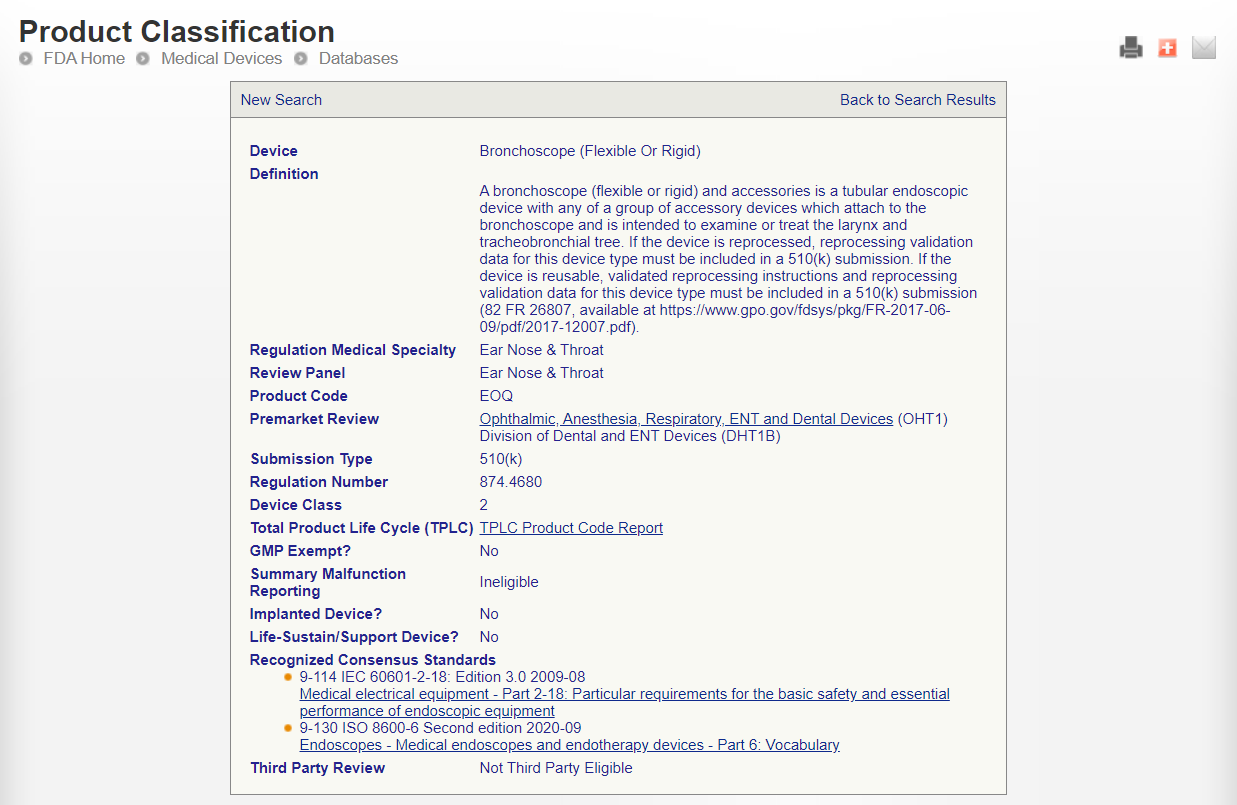 2. 输入产品名,如:bronchoscope(支气管镜),检索结果如下: